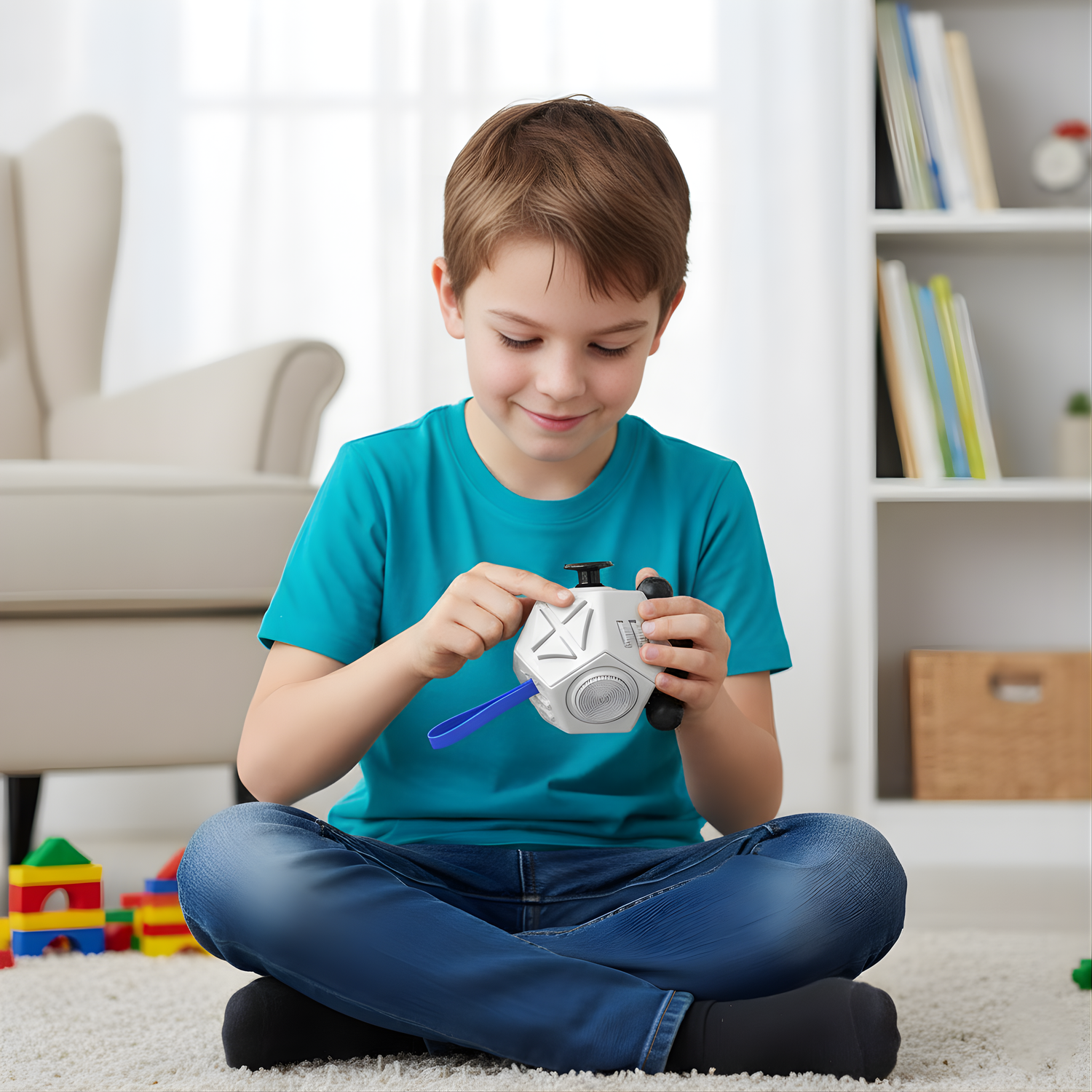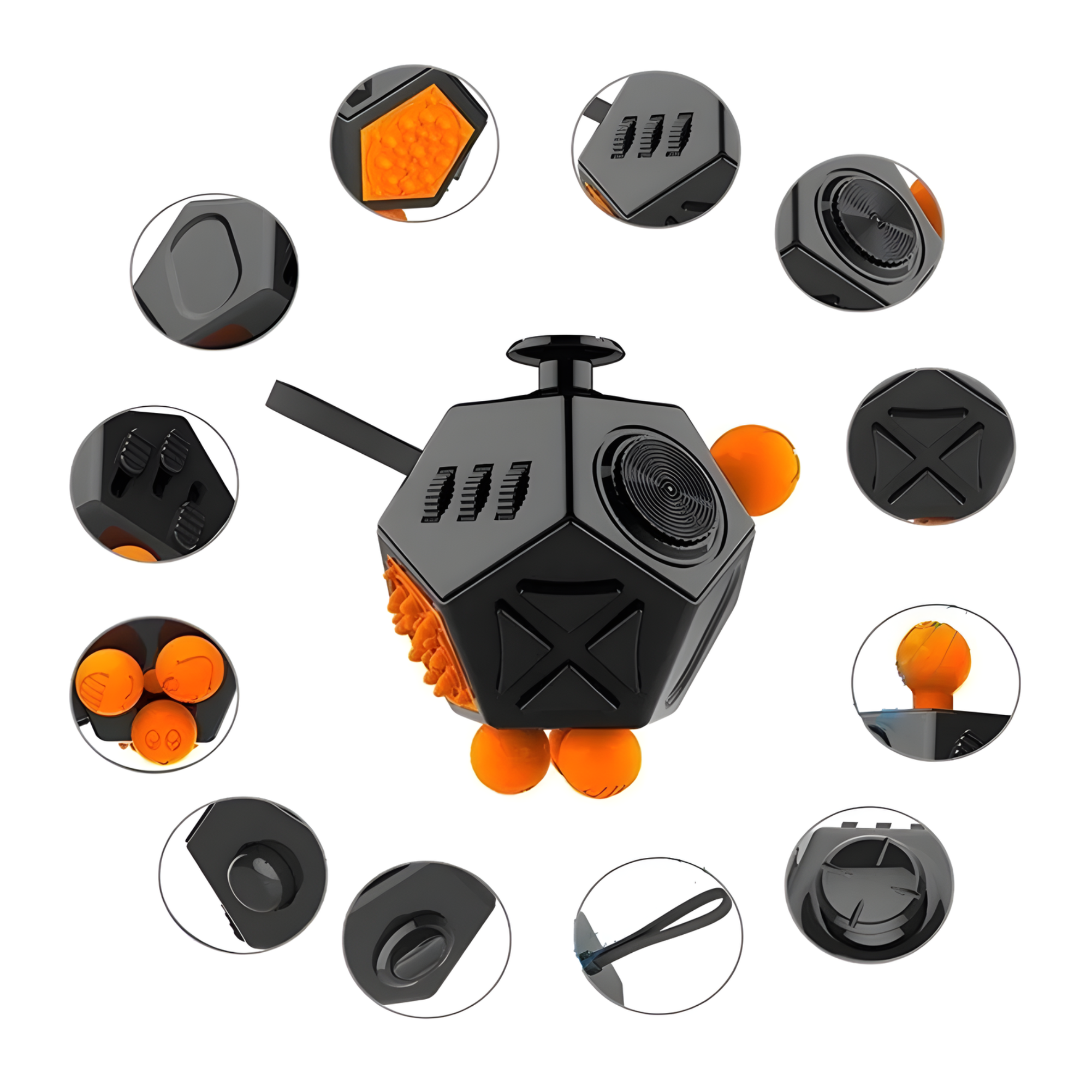 Un increíble juguete antiestrés de 12 caras, diseñado para mantener tus manos ocupadas y tu mente relajada. Cada cara ofrece una textura o función distinta para liberar tensión y mejorar la concentración.